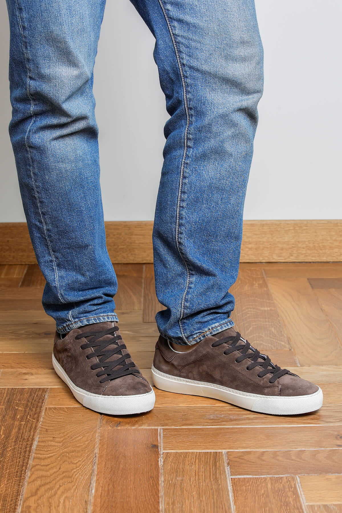 Rich and grounded, this suede sneaker in Portogallo Coffee embodies depth and texture. The warm tone, paired with a soft tactile finish, evokes a sense of effortless refinement. A classic silhouette elevated by its earthy character, designed for those who move with purpose and subtle style.