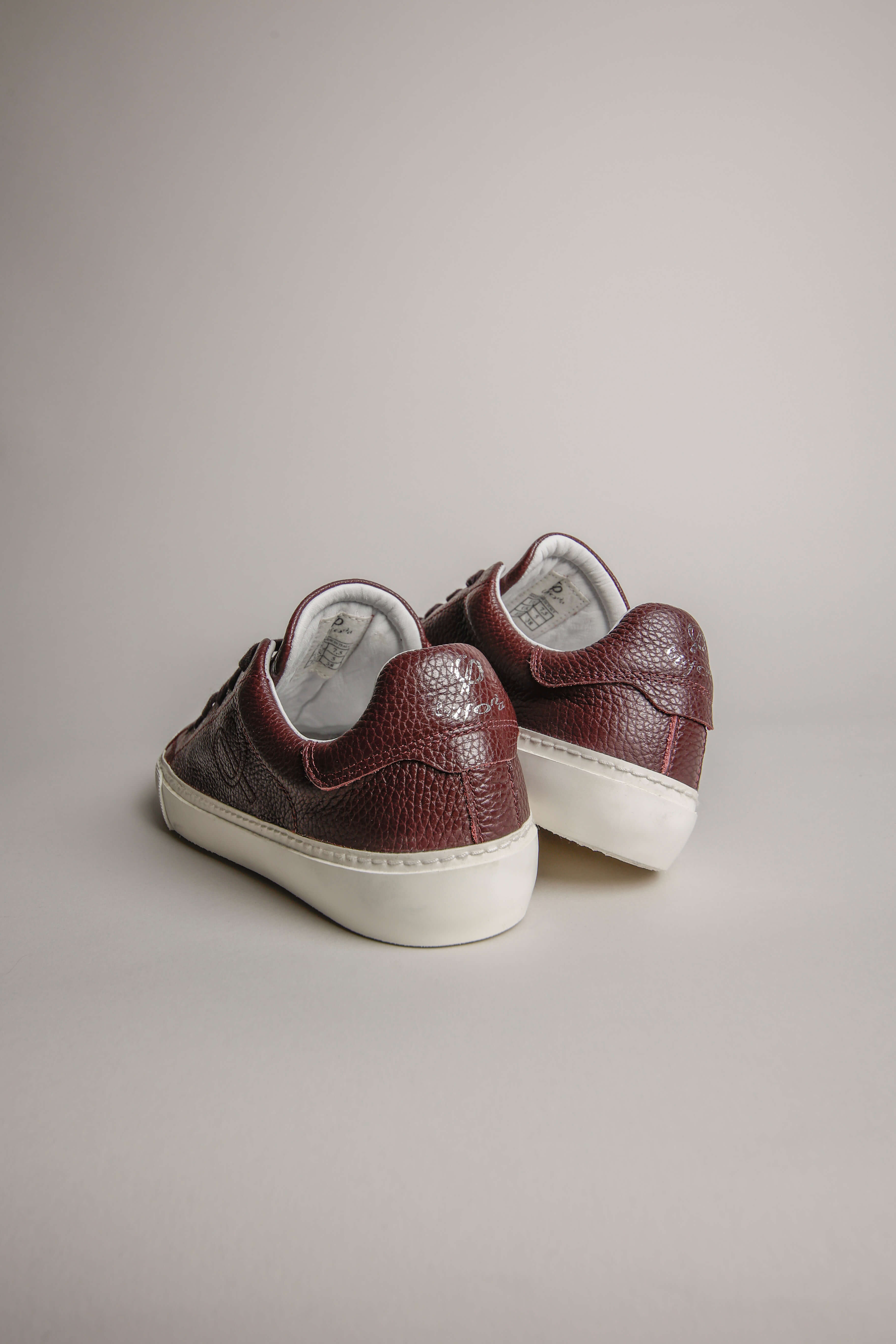 Refined texture meets timeless appeal in this low-top sneaker, crafted from 100% Italian calf leather with a distinctive pebble-embossed finish. Its rich tone brings warmth and elegance, while the softness of the leather guarantees comfort from the first step. Built by hand in Venice with glue-only construction and finished with precise hand stitching, this sneaker is a quiet celebration of craftsmanship.