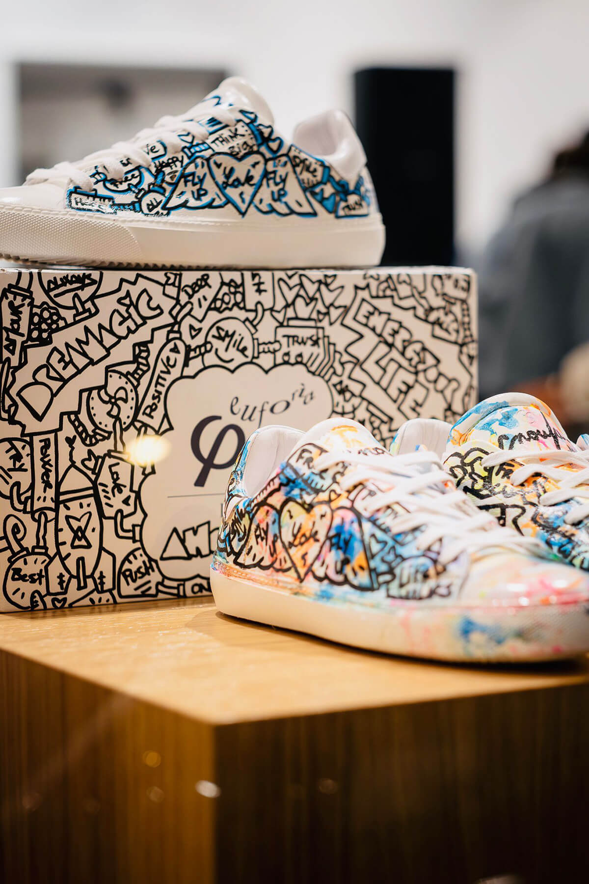 Each sneaker in this extraordinary capsule is a true one-of-one, individually hand-painted by celebrated French artist and Euforia Guest Art Director, Ylan Anoufa.