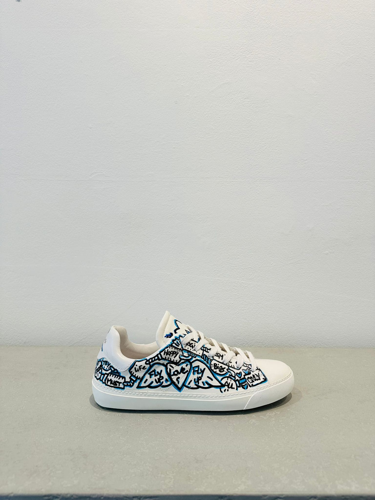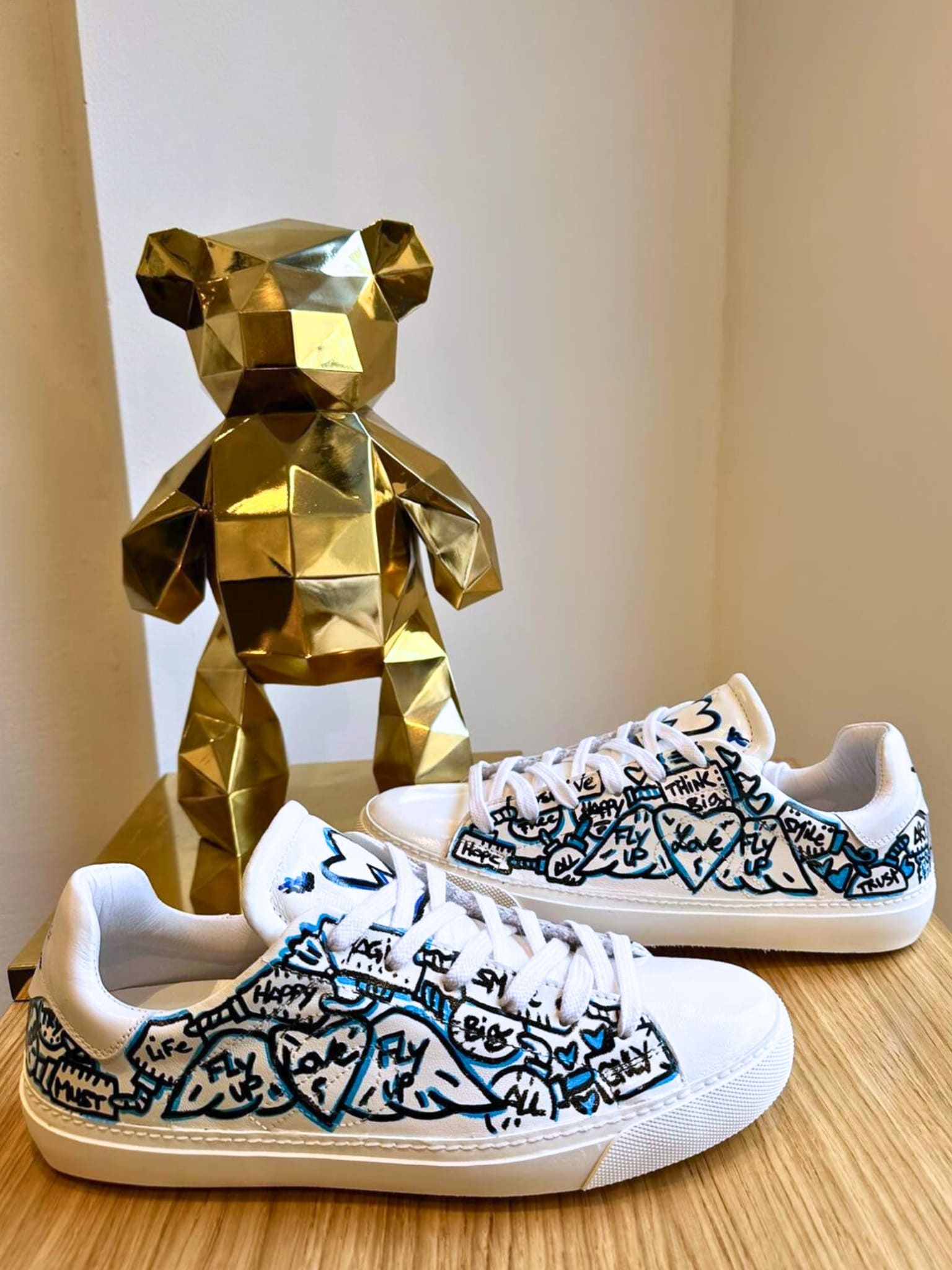 Crafted from premium Italian white leather and transformed by Anoufa’s signature visual language, every pair becomes a unique piece of wearable art — painted by hand, signed by the artist, and created exclusively for you.