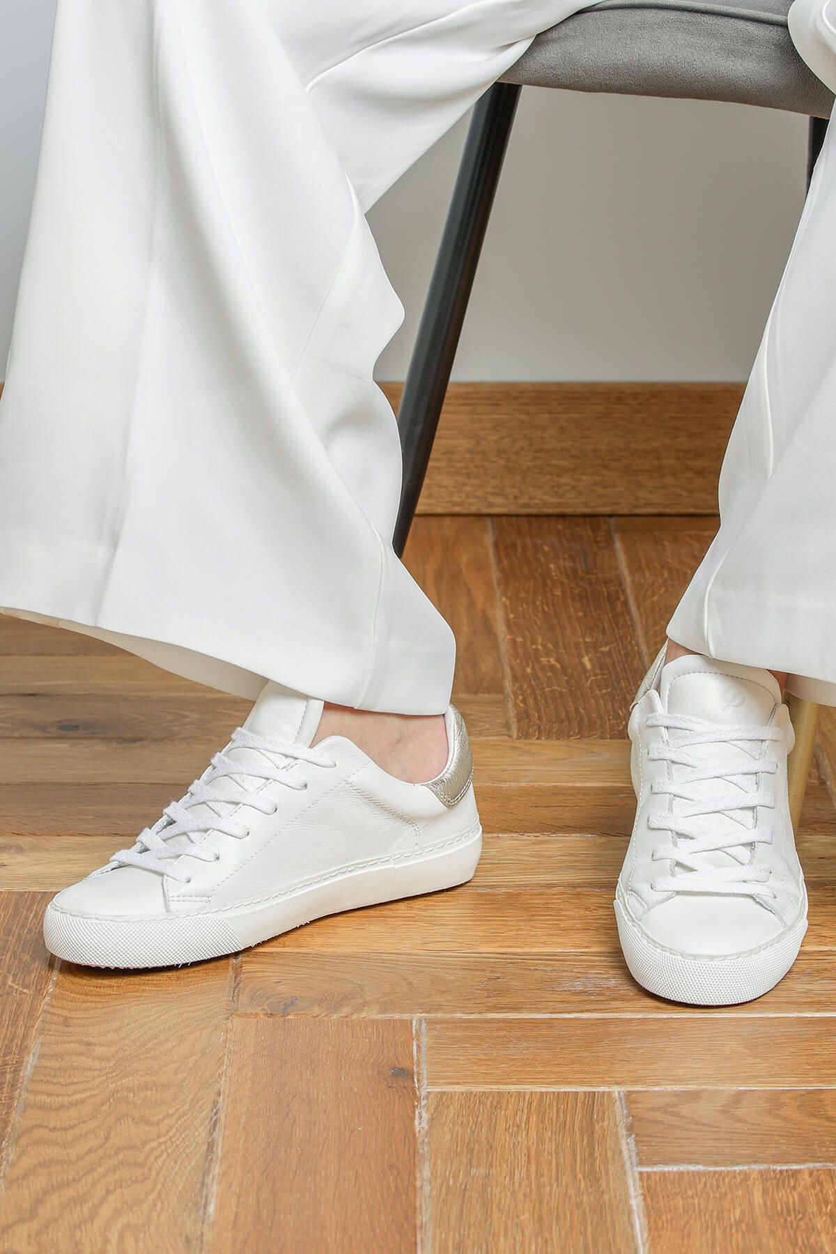 A clean silhouette with a luminous twist. This low-top sneaker is crafted from 100% Italian goat leather with a smooth matte finish, elevated by a metallic gold heel accent. The ultra-soft texture enhances comfort and wearability, while the entirely hand-made construction — from glue-only assembly to manual stitching — reflects the refined skill of Venetian artisans.